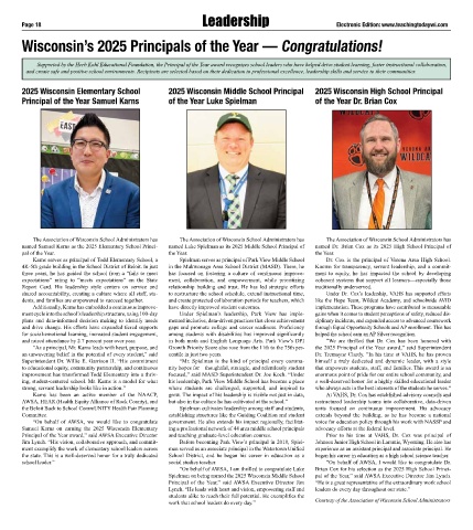 2025 Wisconsin Elementary School 2025 Wisconsin Middle School Principal 2025 Wisconsin High School Principal