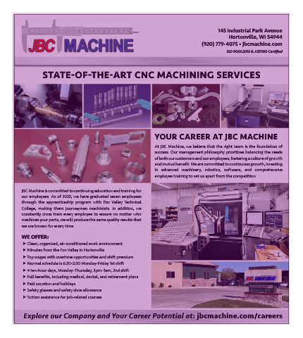 Explore our Company and Your Career Potential at: jbcmachine.com/careers